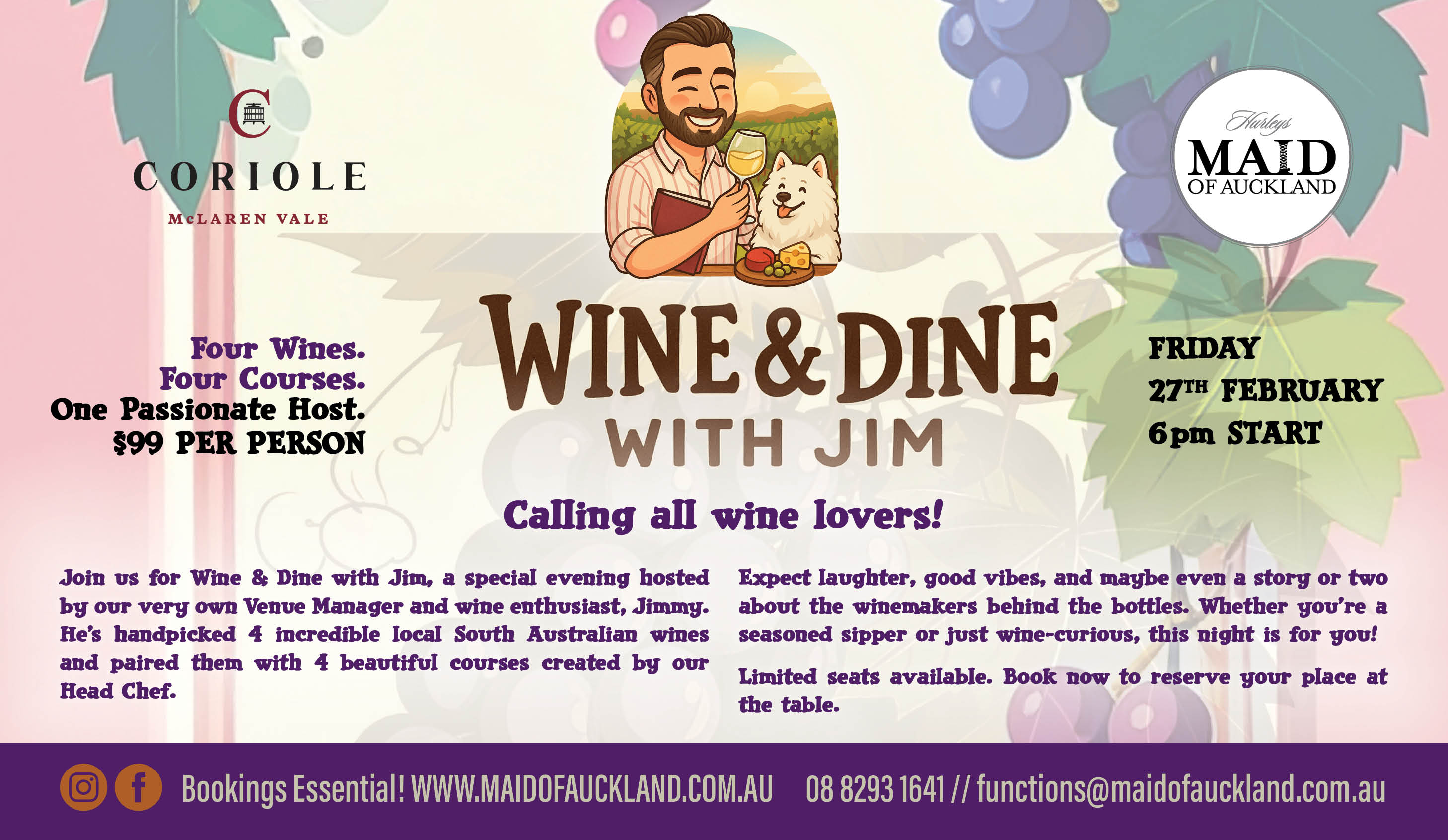 Feel free to send through a function enquiry using the form here, and download our current functions package for T&C's.