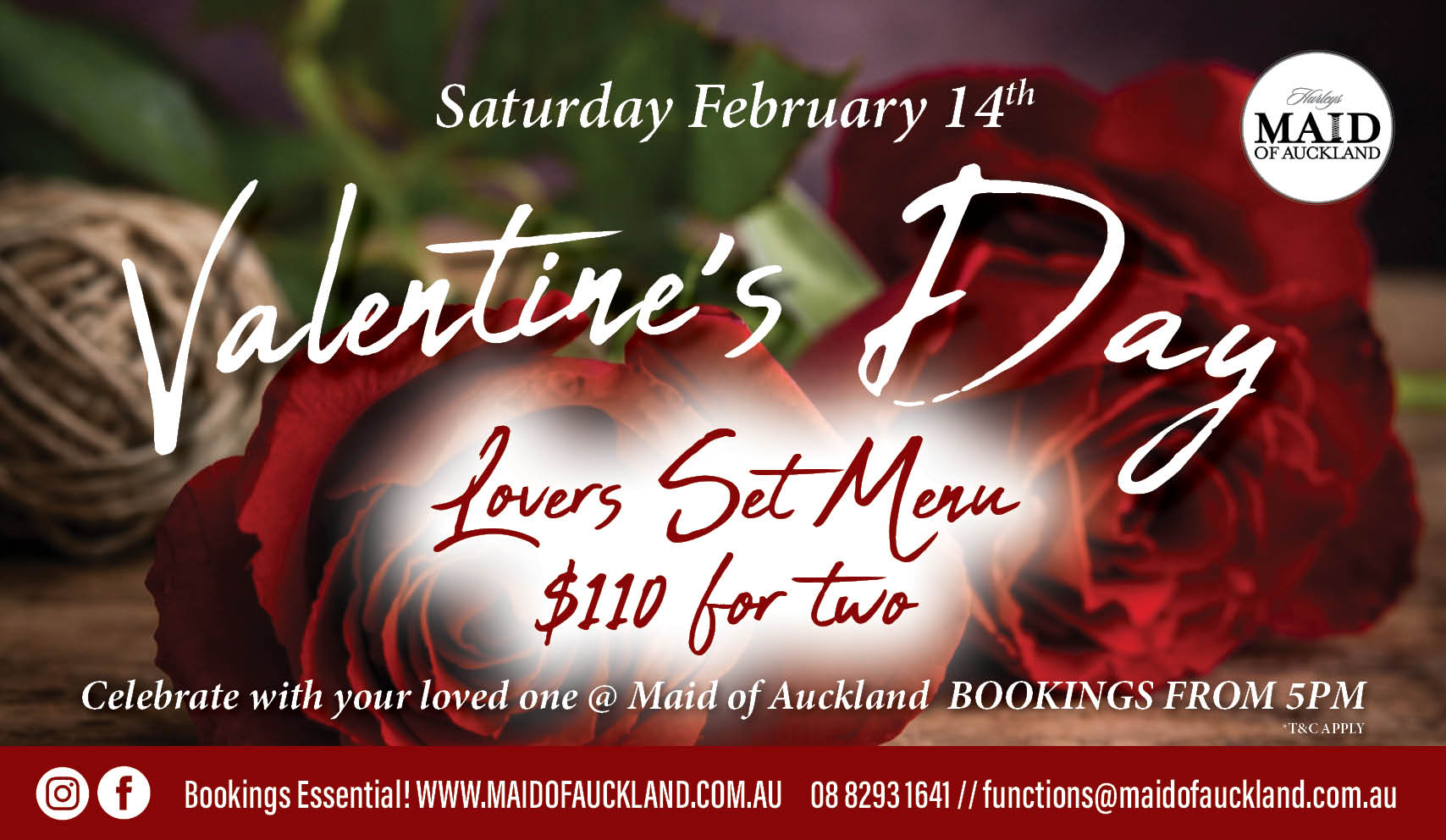 Feel free to send through a function enquiry using the form here, and download our current functions package for T&C's.